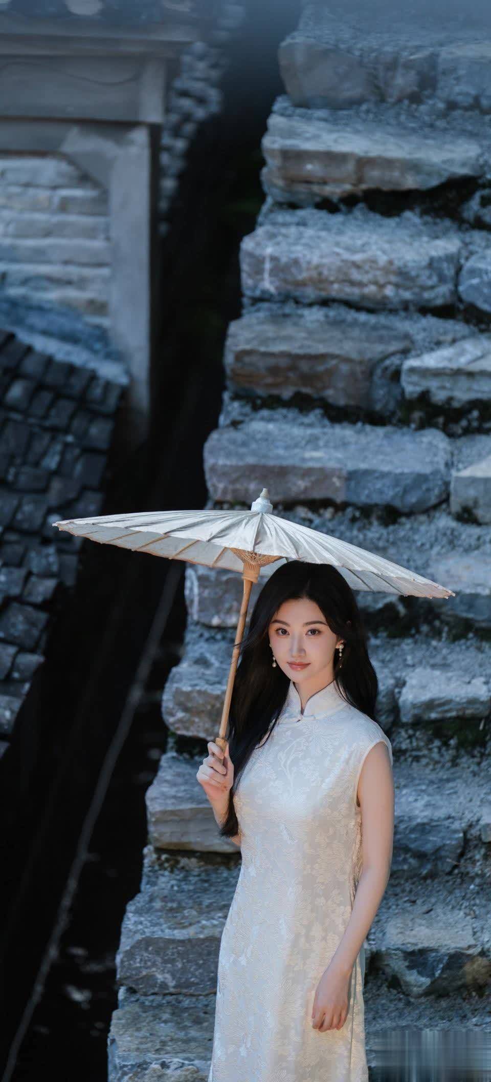 站在古朴石梯上的景甜,用现代审美重新诠释了古典美。这件白色旗袍上的暗纹细节彰显不俗品味,与油纸伞的搭配恰到好处。从《大唐荣耀》的沈珍珠到如今的时尚icon,景甜始终在用行动证明:真正的美,经得起时间的考验。第六张:水墨意境,诗意绵长